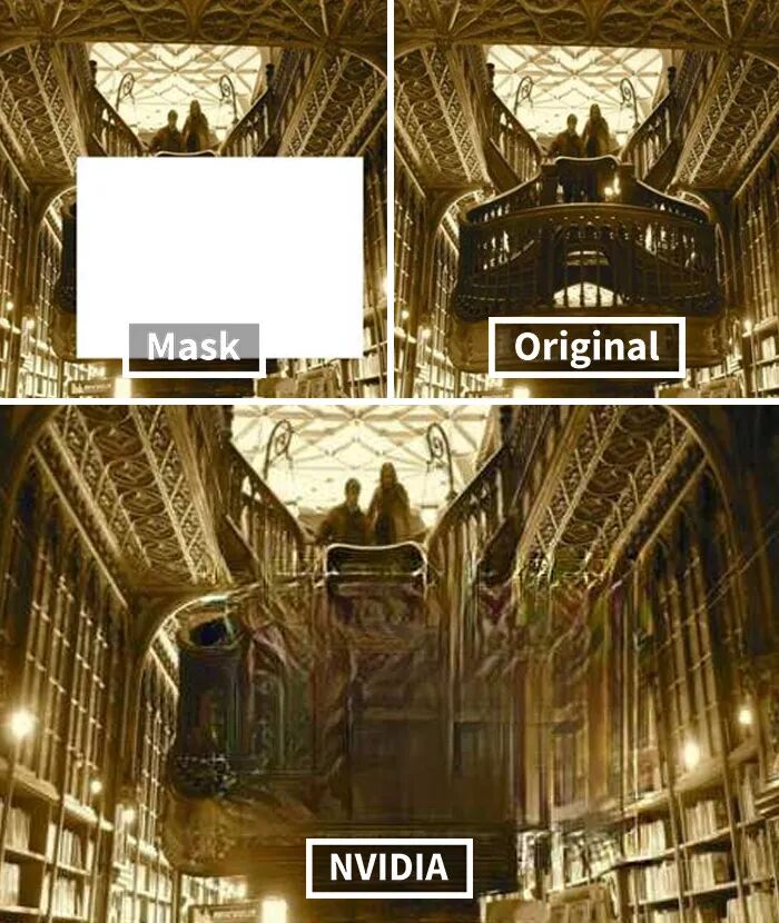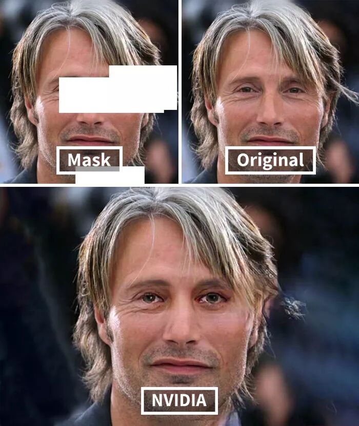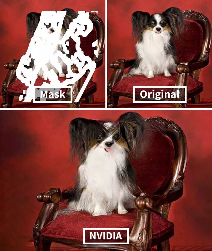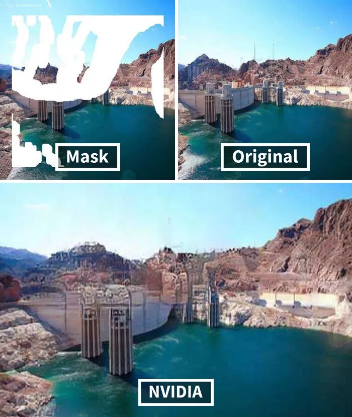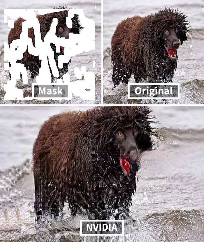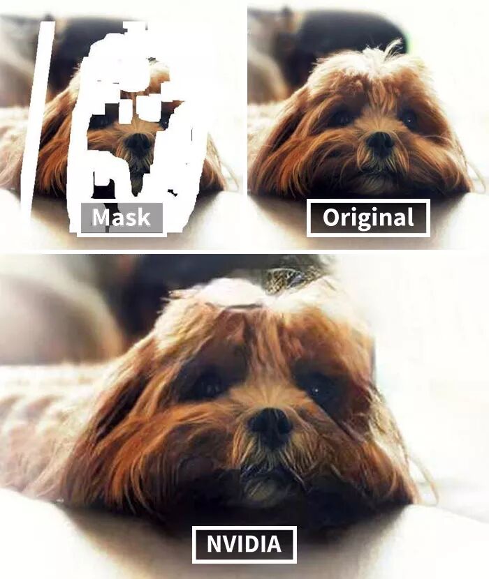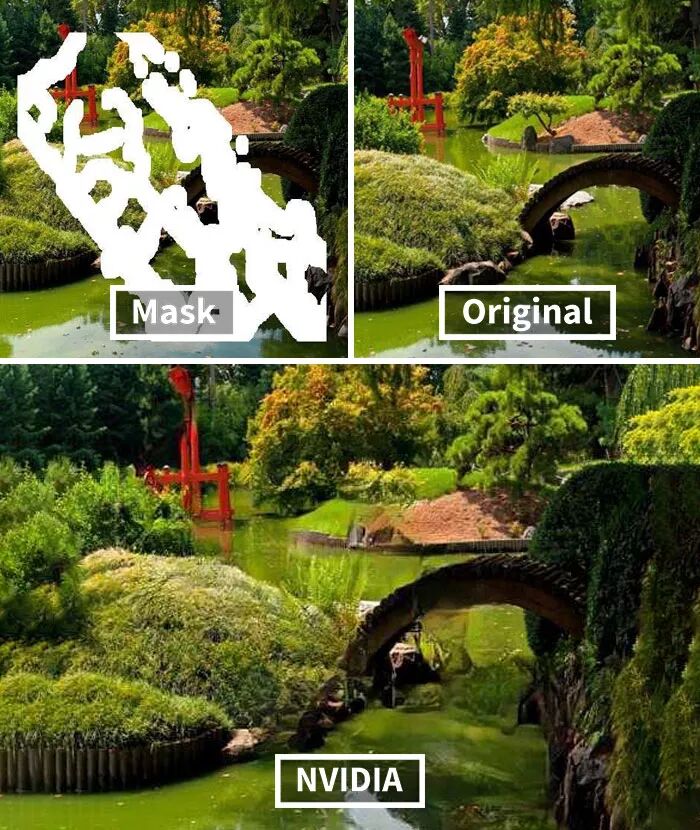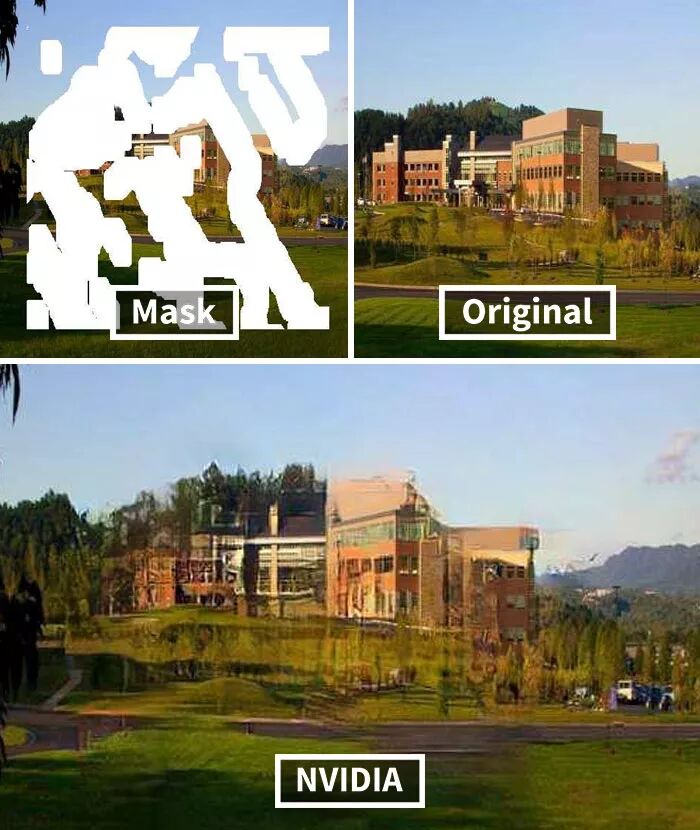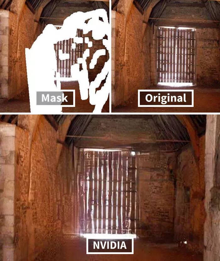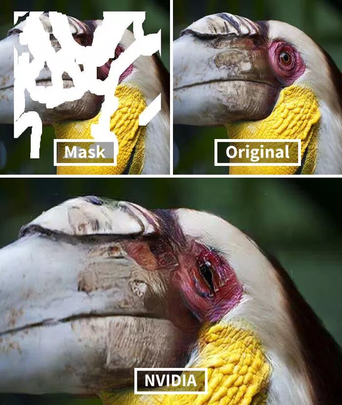 而英伟达研究的这个AI技术牛掰的地方在于,其具有先进的深度学习技术,可以预测图片原本缺失的内容,然后进行还原,