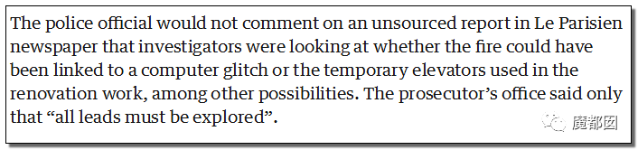 从火灾最初开始,官方就有一个说法:建筑翻新时导致电器短路失火。