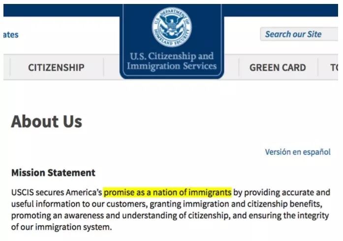 据公众号芝加哥消费指南报道,美国移民局(USCIS)于2月22日在官网修改了自己使命,删除了“确保美国是移民国家的承诺”的字样,不再提美国是移民国家的定位!