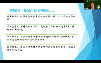 本次讲座围绕 H-1B 职场移民 与 EB-5 投资移民 两大主题展开。主持人赵湘女士首先介绍了讲座目的及注意事项,强调本次分享仅供信息参考,具体移民申请仍需结合个人情况咨询专业移民律师。