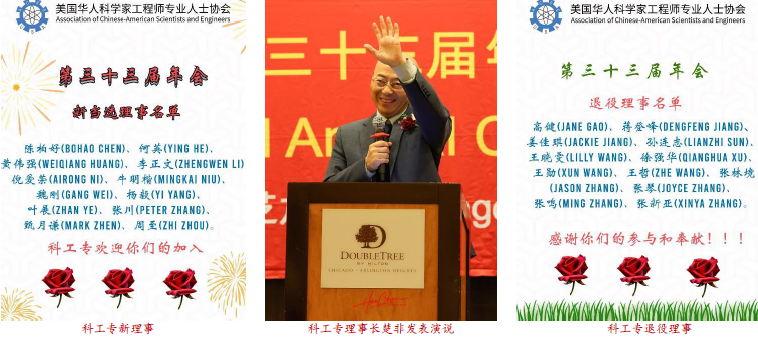 到场的多位贵宾代表也先后上台致辞。他们在发言中高度肯定了美国华人科学家工程师专业人士协会(科工专)成立三十三年来在华人社区中所发挥的积极作用,以及在促进科技创新、人才交流与社会公益方面所作出的突出贡献。