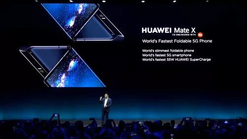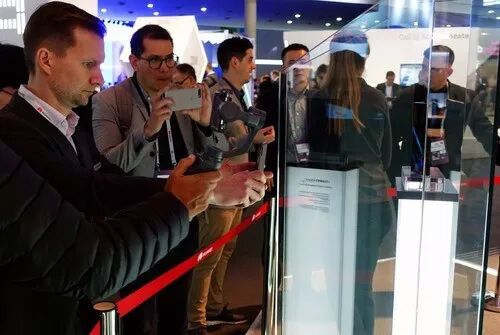 2月25日,在西班牙巴塞罗那,参观者在世界移动通信大会上拍摄华为Mate X手机。新华社记者郭求达摄