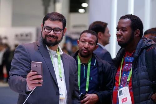 2018年1月9日,观众在美国拉斯维加斯消费电子展华为展台试用Mate 10 Pro手机。 新华社记者李颖摄