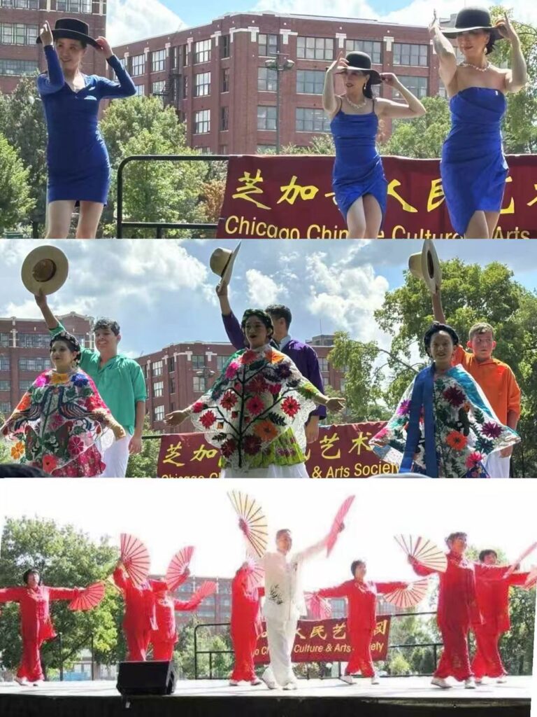 当天下午1点至3点半,活动在McKinley Park Picnic Grove举行,现场人头攒动,掌声、笑声不断。中西合璧的歌舞节目轮番登场,展现了多元文化的独特魅力。舞者们身着华丽服饰,伴随悠扬的乐曲翩翩起舞,既有传统中国舞的婀娜典雅,也有拉美舞蹈的热情奔放,为观众带来一场视觉与听觉的盛宴。