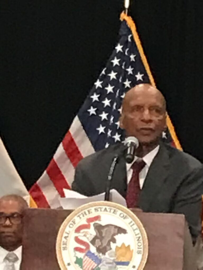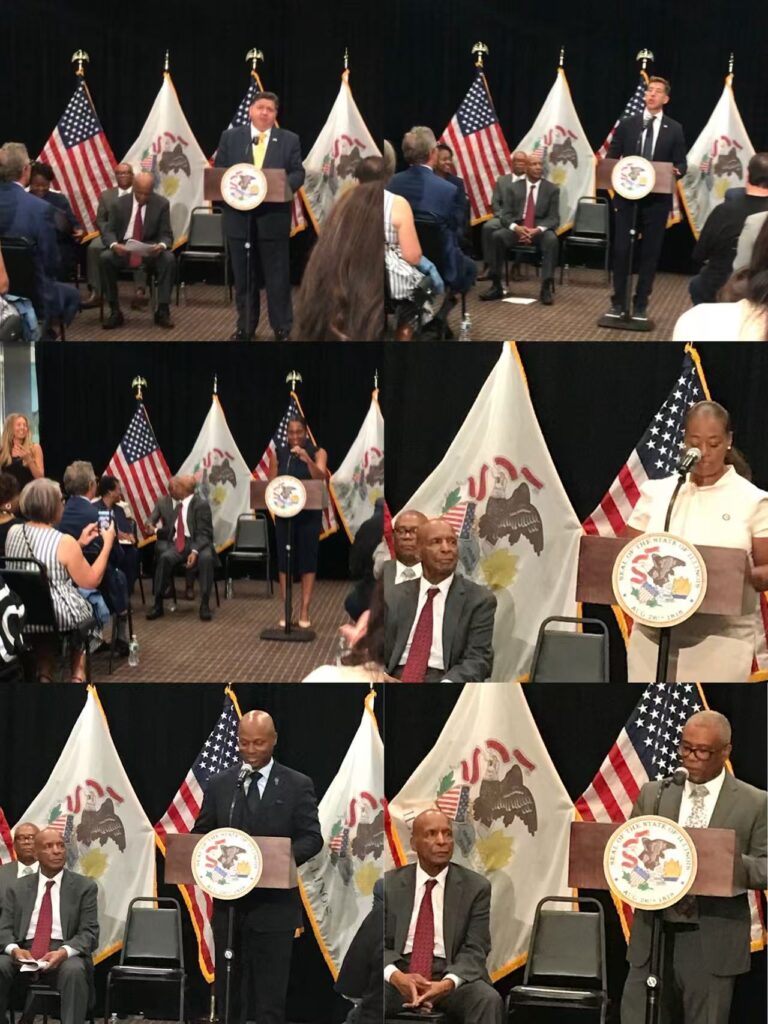 本次典礼由伊州CMS主任 Raven Devaughn 主持,多位重量级嘉宾发表致辞,包括伊州众议院议长 Chris Welch、现任州务卿 Alexi Giannoulias、州长 JB Pritzker、市议员 Walter Burnett、副州长 Juliana Stratton,以及 Jesse White 的女儿 Glenna White Jones。典礼现场庄严隆重,气氛热烈。