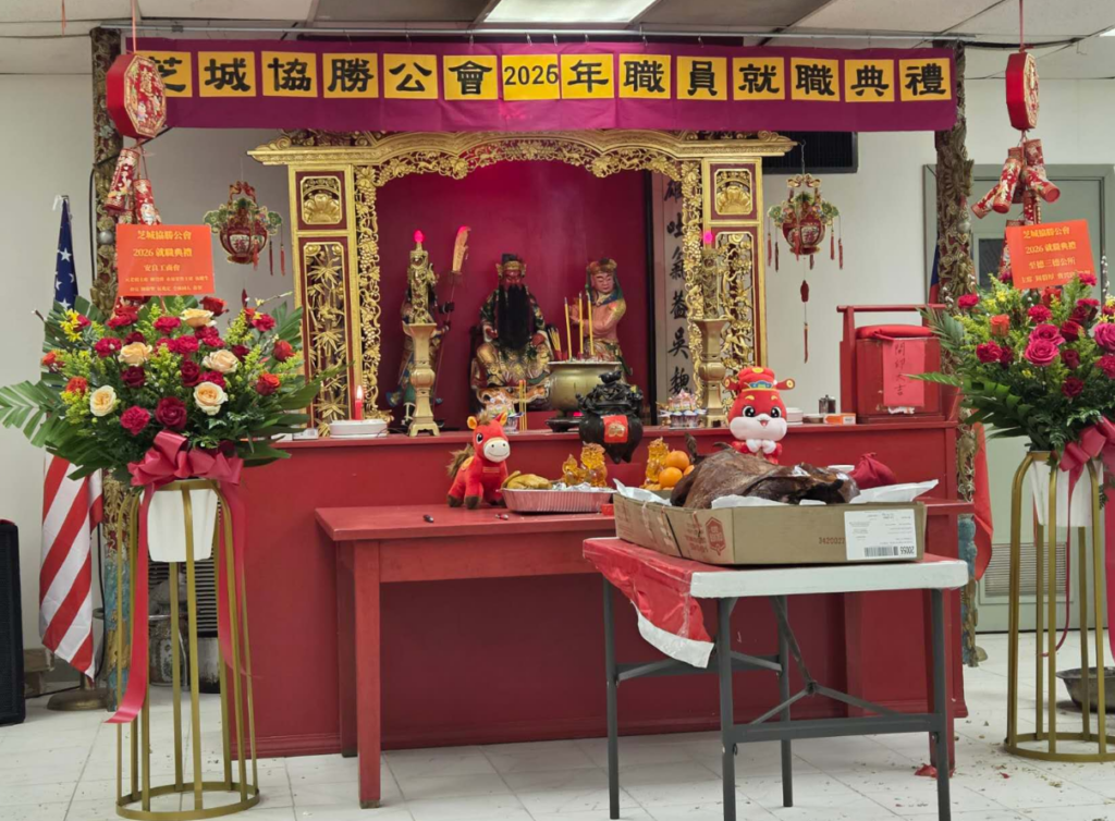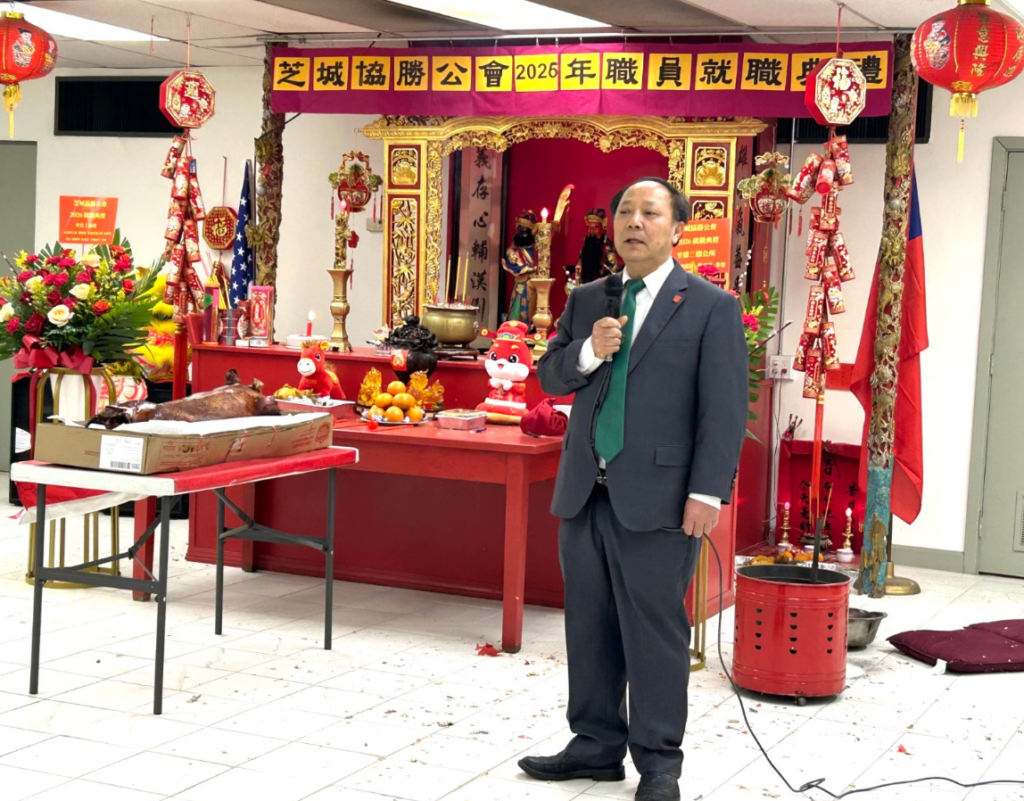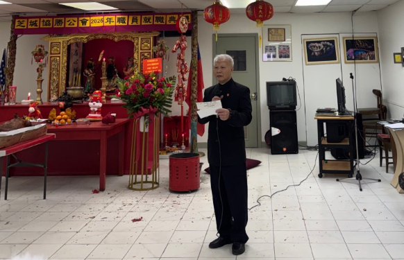 【神州时報訊】芝加哥協勝公會(Hip Sing Association of Chicago)2026年度新舊職員交接典禮於2月15日在協勝大樓二樓禮堂隆重舉行。典禮在莊嚴肅穆的傳統儀式中進行,現場氣氛隆重而熱烈,標誌著新一屆領導班子正式履新。