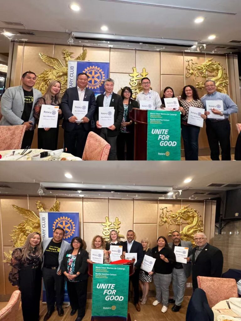 扶轮会的地区总监Bonnie Sanchez-Carlson为扶轮社新的成员颁发证书