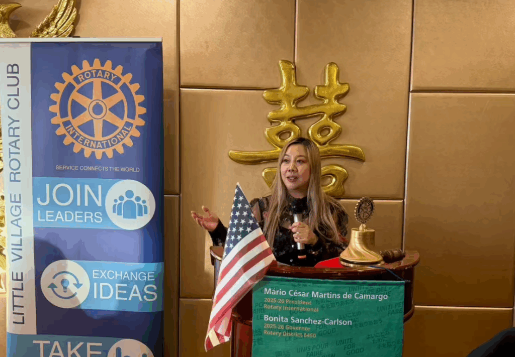 第25区区长卢汉士强调唐人街不仅是芝加哥的重要文化地标,更是经济与文化交流的桥梁,他希望通过扶轮社的平台让更多人认识和支持唐人街。