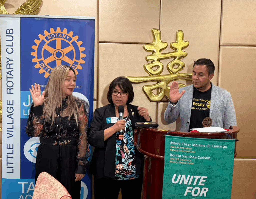 在典礼上,芝加哥唐人街及Little Village 扶轮社新一届职员、理事会成员及新会员举行了庄重的就职仪式,并郑重宣誓,承诺履行扶轮社“服务人群,超我服务”的使命。