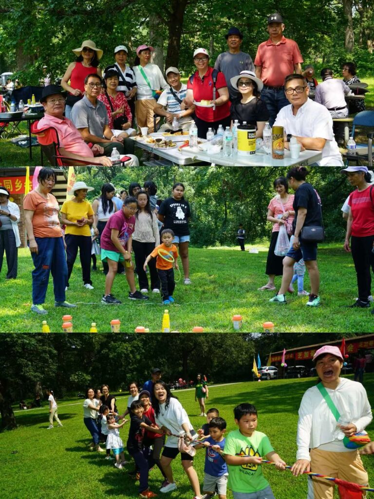 正值芝加哥夏季,阳光明媚、气候宜人,此次野餐会不仅为乡亲们提供了一个放松身心、享受户外的机会,也成为加强乡情、促进交流的重要平台。活动内容丰富多彩,包括各式美食品鉴、卡拉OK演唱、拔河比赛、互动游戏及抽奖环节,现场笑声不断、掌声连连。