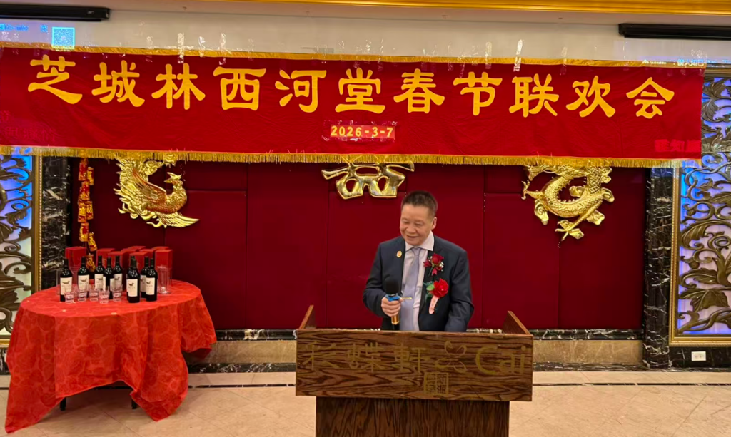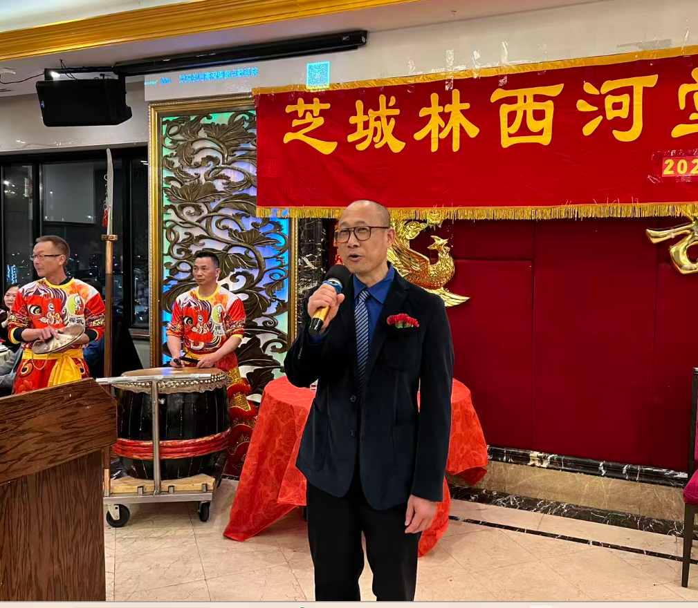 芝加哥林西河堂主席 林锡新 在致辞中向在场宗亲及来宾致以诚挚的新春祝福。他表示,春回大地、万象更新,大家在辞旧迎新的时刻欢聚一堂,共同庆祝农历新春,是宗亲情谊与中华传统文化的体现。他感谢林西河堂理事及宗亲们长期以来对会务发展的支持与奉献,并祝愿大家在新的一年事业有成、身体健康、家庭幸福、万事如意。
