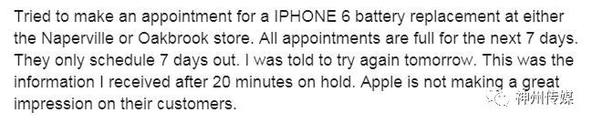 如果出现上述情况,客户可以选择去苹果门店更换电池,但是根据L先生的真实经历,这次亲自前往是无功而返,并且是没有下文的那种。那又有几个人可以成功预约到换电池呢?(本报记者王茜报道)