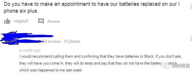 有顾客建议一定要进行预约并确定有电池存货,否则会被告知没有电池在店内。