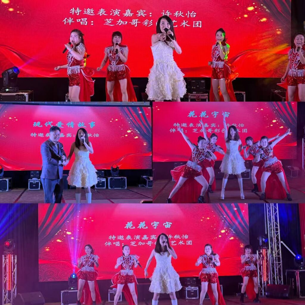 特邀香港著名歌手 许秋怡 深情献唱经典金曲《现代爱情故事》《片片枫叶情》,熟悉旋律响起,勾起无数观众的青春回忆,全场掌声不断。芝加哥彩色艺术团倾情伴舞,舞姿优美、配合默契,为演出增添绚丽光彩。