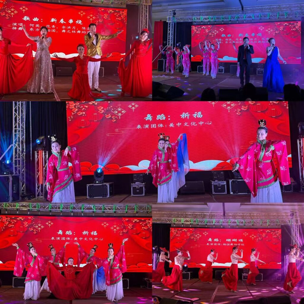 整场晚会节目精彩纷呈:《年年有余》东方舞蹈《清庭云月》舞之林舞蹈团《扇舞·蝴蝶飞》等柔美典雅。拉丁舞表演——《热舞迎春》。芝加哥华人艺术团的吴晓萍女士高亢嘹亮的《大地飞歌》。何英、范青、余洪月,以及的陈潇,带来《新春串烧》!美中文化中心的艺术家们,带来诚挚的舞蹈——《祈福》。强舞蹈学校的《珊瑚颂》等精彩表演。