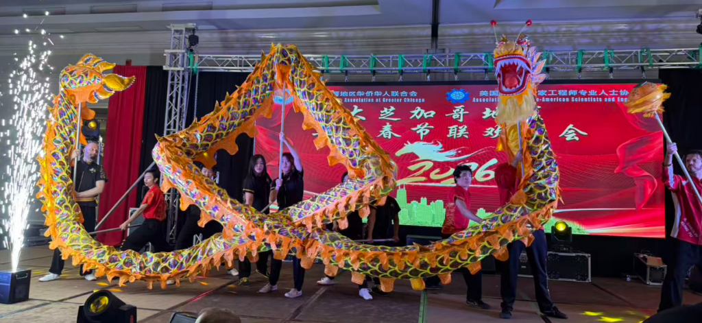 大芝加哥地区华侨华人联合会主席黄正东在致辞中表示,华人社区在传承中华文化的同时,也积极融入主流社会、服务当地发展。他感谢各界支持,并祝愿侨胞在新的一年“龙马精神、再创辉煌”。本届春晚由华联会与科工专主办,芝加哥数十个侨团、商会、专业协会及文化团体联合协办,协办单位数量创下历届之最。各团体分工合作、资源共享,从筹款、节目策划到现场服务,体现出空前团结与高效协作。