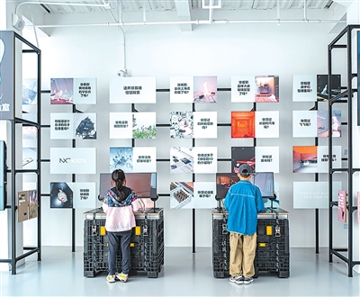 在上海玻璃博物馆,小朋友在“NXT虚拟现实实验室”内参观体验。