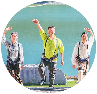 福建省福州市石竹山景区,游客穿戴“外骨骼机器人”登山。