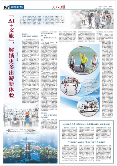 当前,AI正成为不少人的出游“伴侣”。输入旅行时间、预算、兴趣爱好以及一些特殊要求,短短几分钟,一份由AI生成的详细旅行计划便摆在面前……越来越多的游客开始选择使用AI进行个性化行程定制。在社交平台,与“用DeepSeek做旅游攻略”“AI定制旅行”等话题相关的讨论帖已达数十万篇。这些讨论帖中的行程规划不仅包括景点和餐饮住宿安排,还对如何避开拥堵、节省开销、旅行穿搭提出建议。生成攻略、在线向导、个性化推荐……AI正在成为年轻人旅行的“新向导”。