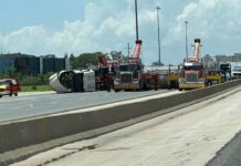 芝加哥55号高速公路近275出口路段事故致大面积封路 一油罐车横翻阻断交通
